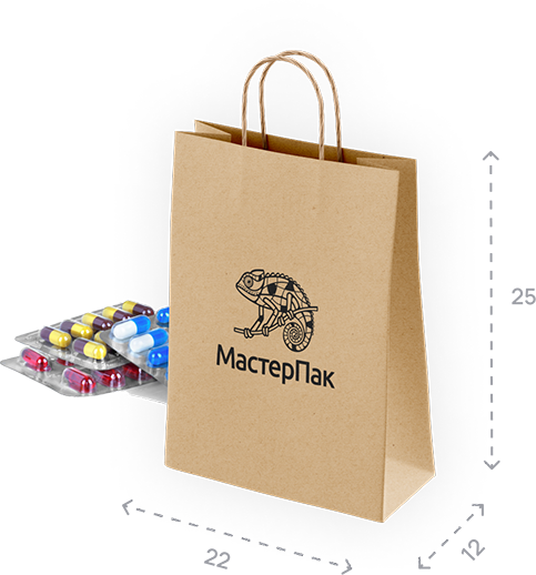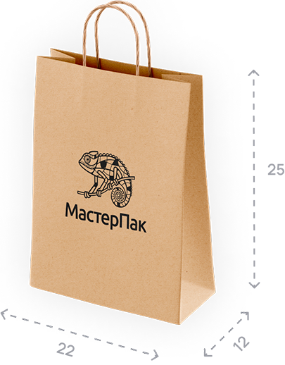 - Пакет с размерами 22*12*25 см: 22* см — ширина пакета, 12 см — глубина, 25* см — высота пакета